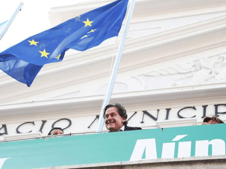 Ignacio Rivera, en el balcón del Concello tras la recepción institucional al Racing (foto: Raúl Lomba / Cadena SER)